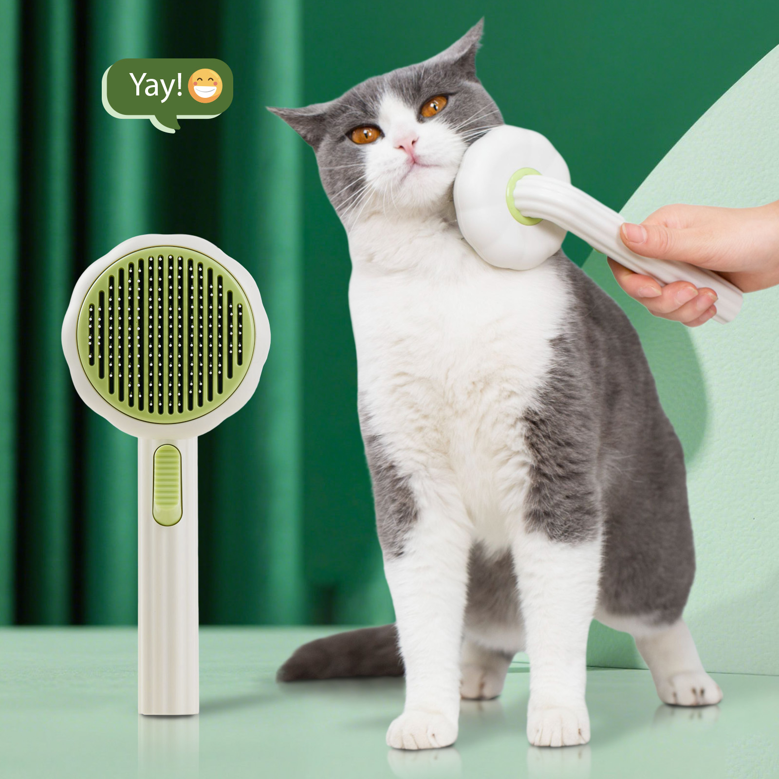 - 【Self Cleaning Cat Brush】VIOJOJO cat brush for indoor cats is easy to clean, and is a perfect comb brush for long hair cats or dogs. It features a one-click cleaning button that pops out the shutter, separating the brushed hair from the metal needle, making it easy to wipe the hair off your cats. The button of our cat hair brush saves your time and energy when grooming and cleaning.